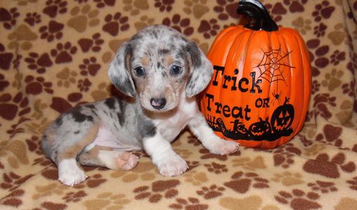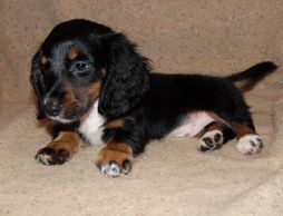 A VERY SMALL BLACK AND TAN DAPPLE GIRL